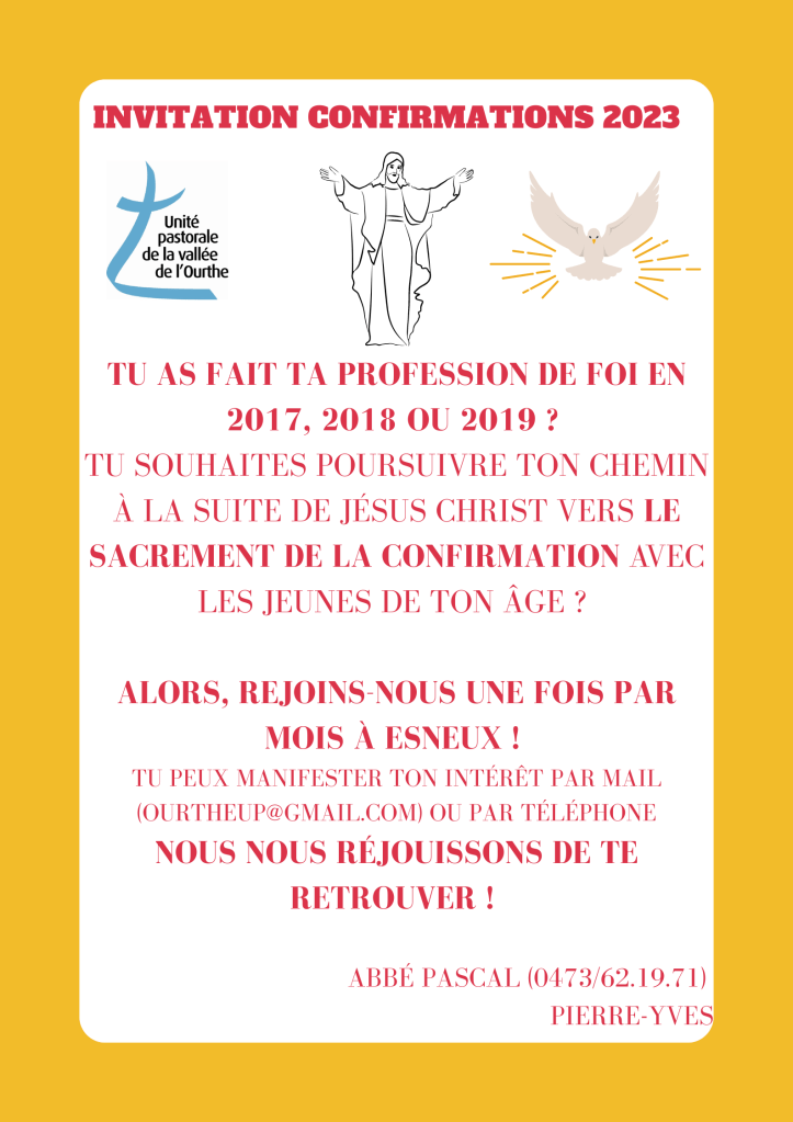 Après le passage de notre Unité Pastorale à Banneux, le 10 mai 2025, dans le cadre du pèlerinage de l’Année Sainte, nous avons eu la joie d’accueillir notre évêque, Monseigneur Jean-Pierre Delville, venu le dimanche 19 octobre 2025 en l’église d’Esneux, conférer le sacrement de la Confirmation à 7 ados qui ont bien voulu confirmer ou renouveler leur foi baptismale. Sarah, Victor, Jana, Clémentine, Hugo, Chloé et Stève ont promis de transmettre le message de Jésus-Christ à toutes les personnes qu’ils croiseront sur leur route avec l’aide de Dieu.