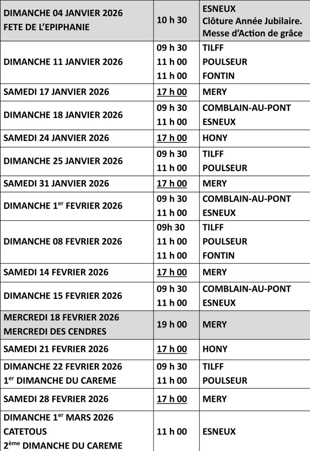 Les horaires des messes dominicales et des messes de semaine sont également consultables sur le site Eglise info.be et dans le bulletin Le P’tit Fil de l’Ourthe, notre bimestriel.
